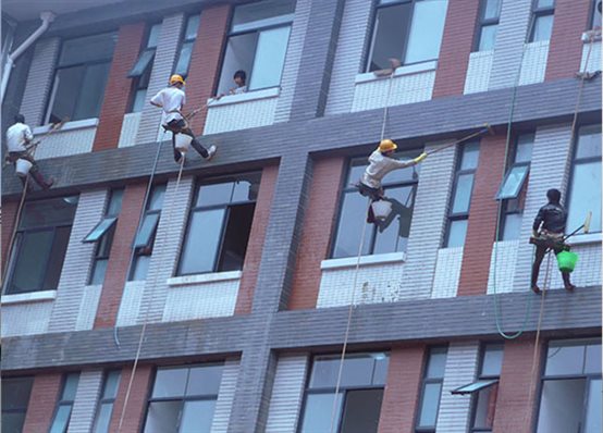 成都外墻清洗一般指城市高層建筑物外立面清洗,與高層外墻粉刷,高空外墻廣告安裝拆除等都屬于高空作業范疇,也是清洗公司、家政公司常項服務.目前開荒保潔一般采用坐式高空吊板清洗方式,這種方式比較簡單,成本也低,只要工人身體素質好、繩子連接牢固就可以進行,一般的大樓都可以用這種方式進行清洗,但是這種方式的操作必須使安全措施到位,否則危險性很大,造成傷亡事故的都是因安全措施不到位造成的.因為高層外墻清洗存在著危險性和復雜性,所以這項工作有著相當程度的科學性和專業性.首先要根據施工現場情況和環境制定詳實的施工方案,遵循外墻清洗先決條件,嚴格執行外墻清洗安全操作規程,確保工程安全做到萬無一失,下面來看看外墻清洗條件和安全操作規程:
