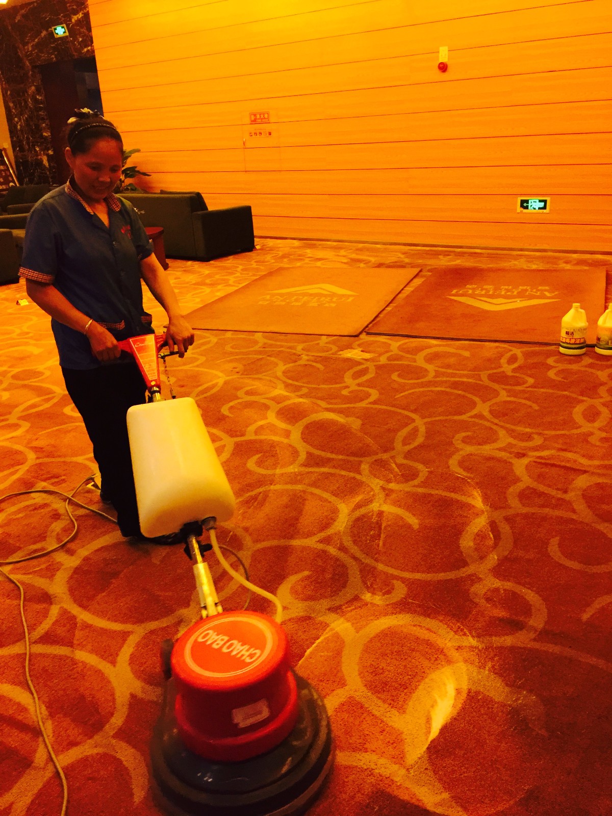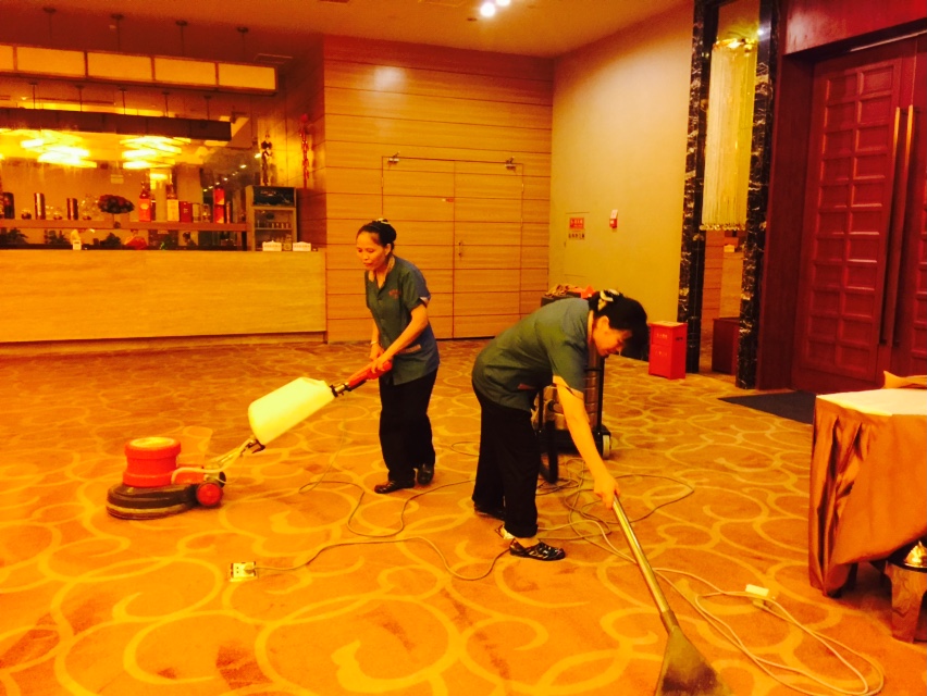 2015年6月13日,下午入場清洗安培瑞酒店宴會廳等位置的地毯,晚上8點入場清洗酒店廚房油煙機。